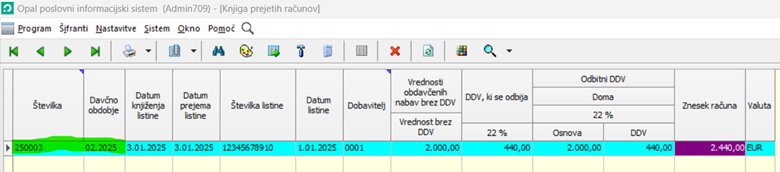 V obdobju plačila računa bo program predmetni račun tudi upošteval v vseh DDV evidencah: