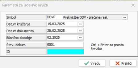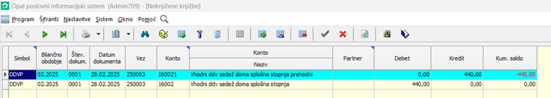 Po potrditvi okna bo program v neknjiženi prostor prenesel preknjižbe DDVja, od koder ga poknjižite v glavno knjigo.
