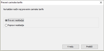 Vsi tisti, ki uporabljate šifrant na firmi, potem morate v meniju Šifranti / Devizne evidence / Intrastat / Carinske tarife na kladivu izvesti še opcijo Preveri neskladja, da vam program izpiše oz. preveri ali obstaja katere KN na kateri je potrebno izvesti Popravek neskladja.